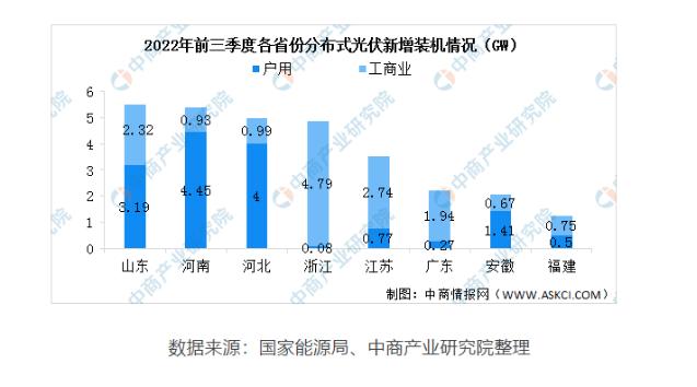 從各省份分布式光伏新增裝機(jī)情況來看,山東、河南、河北分布式光伏新增裝機(jī)較大。其中,山東戶用分布式光伏新增裝機(jī)3.19GW,工商業(yè)分布式光伏新增裝機(jī)2.32GW。上述地區(qū)主要是有電或不缺電地區(qū),因此基本為并網(wǎng)型分布式新能源發(fā)電系統(tǒng),據(jù)不完全統(tǒng)計(jì),分布式并網(wǎng)型光伏市場(chǎng)規(guī)模約占分布式95%左右,其主要企業(yè)是浙江正泰安能電力系統(tǒng)有限公司、江蘇昱德新能源科技有限公司、深圳禾望電氣股份有限公司等并網(wǎng)新能源發(fā)電系統(tǒng)制造企業(yè)。整個(gè)離網(wǎng)型光伏/風(fēng)光互補(bǔ)供電系統(tǒng),因?yàn)樗姆植贾饕谶呥h(yuǎn)地區(qū)、無電地區(qū)、缺電地區(qū)和電力不穩(wěn)定地區(qū),市場(chǎng)規(guī)模5%左右,約230萬千瓦左右。主要是南京歐陸電氣股份有限公司、上海致遠(yuǎn)綠色能源股份有限公司、江蘇乃爾風(fēng)電技術(shù)開發(fā)有限公司等為主的以離網(wǎng)新能源發(fā)電系統(tǒng)制造企業(yè)。