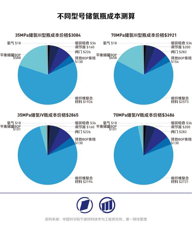 ?、粜蛢淦坎粌H性能更優(yōu),成本也低于Ⅲ型儲氫瓶。根據(jù)中國科學院寧波材料技術(shù)與工程研究所近期的測算,35MPa、70MPa的儲氫Ⅲ型瓶成本價格分別為3084美元、3921美元,而35MPa、70MPa的儲氫Ⅳ型瓶成本價格分別為2865美元和3486美元,分別低7%和11%。