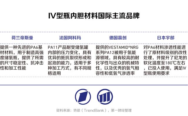 當前國內(nèi)Ⅳ型儲氫瓶內(nèi)膽材料主要由國外企業(yè)供應,包括日本宇部興產(chǎn)、荷蘭帝斯曼、美國杜邦(塞拉尼斯)、法國阿科瑪?shù)?,成本較高,是下一階段國產(chǎn)化突破的重點。