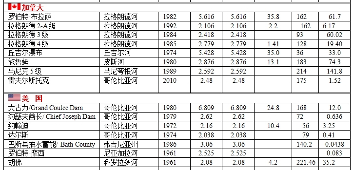 梯級水電站是世界上發(fā)展水力發(fā)電的一個重要的獲取電力的方式。在制作下表時,我把相同一河流的水電站歸納在一起,您可以看出,世界上許多河流都是梯級水電站。