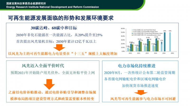 時璟麗老師在“2021光伏領(lǐng)袖大會”上的發(fā)言稿。時老師認(rèn)為:可再生能源要在能源轉(zhuǎn)型中發(fā)揮重要作用。2050年,中國要建成高比例可再生能源電力系統(tǒng)。其中,非化石能源占比將達(dá)到91%,風(fēng)電、光伏占比將達(dá)到73%!未來可再生能源的發(fā)展,從資源、技術(shù)、產(chǎn)業(yè)、經(jīng)濟(jì)性角度,均不存在瓶頸與障礙!