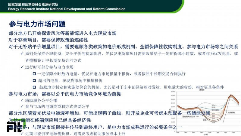 對于風(fēng)電、光伏參與市場化交易,時老師認(rèn)為:1)對于存量項(xiàng)目,要保證政策的延續(xù)性;2)對于新增項(xiàng)目,要建立公平的電力市場環(huán)境為前提,做好輔助服務(wù)費(fèi)用分?jǐn)?、參與的類型和方式也要公平。
