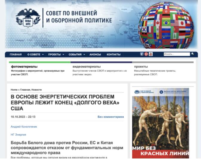 “歐洲的能源問題基于美國(guó)‘漫長(zhǎng)世紀(jì)’終結(jié)”,截圖來(lái)自“俄羅斯外交與國(guó)防政策委員會(huì)”網(wǎng)站