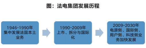 受到二戰(zhàn)后重建、石油危機的影響,法國政府希望在短時間內(nèi)快速建設(shè)法國電力工業(yè)。政府要求法電集團作為擔當此重任的主體。于是此階段法電重點發(fā)展本土的發(fā)電、輸電、配電業(yè)務(wù),尤其是大量建設(shè)核電站。