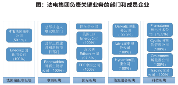 戰(zhàn)略決定組織變革,組織支撐戰(zhàn)略落地。目前法電負責關(guān)鍵業(yè)務(wù)的成員企業(yè)和部門可以歸納為五大板塊,如下圖所示。