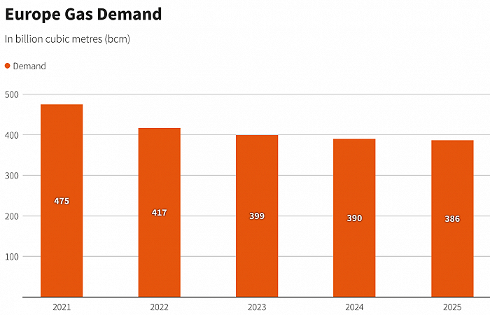 一些分析師表示,除了今年冬天天氣的不確定性之外,能源使用減少,其實(shí)是因?yàn)闅W盟的工業(yè)生產(chǎn)正在永久性收縮。