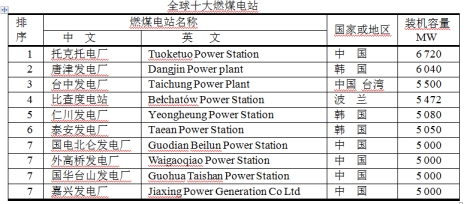 燃煤發(fā)電仍然霸占全球電力生產(chǎn)的主導(dǎo)地位,主要生產(chǎn)國(guó)是中國(guó),在全球前十位中占六席。第一位由托克托電廠取代了原來(lái)的臺(tái)中發(fā)電廠。