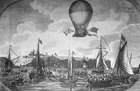 △ 1784年--讓·皮埃爾·布蘭查德(Jean-Pierre Blanchard)嘗試了一個可拋棄的氫氣球,但它沒有轉向。
