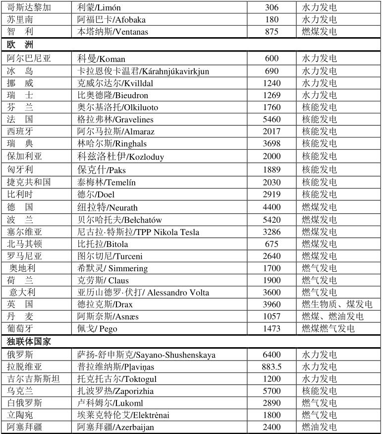 “世界各國(guó)最大的發(fā)電站”只是指最大的,可以看見最大最多的發(fā)電站最多的仍然是水力發(fā)電,其次為核能發(fā)電、燃煤發(fā)電;也有燃?xì)獍l(fā)電。根據(jù)各國(guó)的資源不同,最大的發(fā)電站也有特色,如中南美洲以水力發(fā)電為主,亞太地區(qū)的水力發(fā)電也很發(fā)達(dá)。
