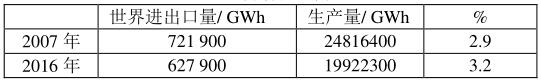 根據BP 2019的報告,2018年全球發(fā)電量為26614.8 TWh,因此,2018年全球電力貿易量為: