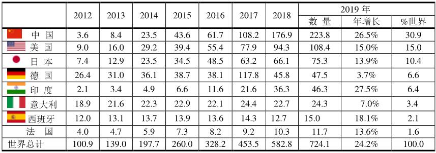 根據REN21 2020年的統(tǒng)計,2019年全球光伏裝機容量增加了115 GW,裝機容量達到627 GW。