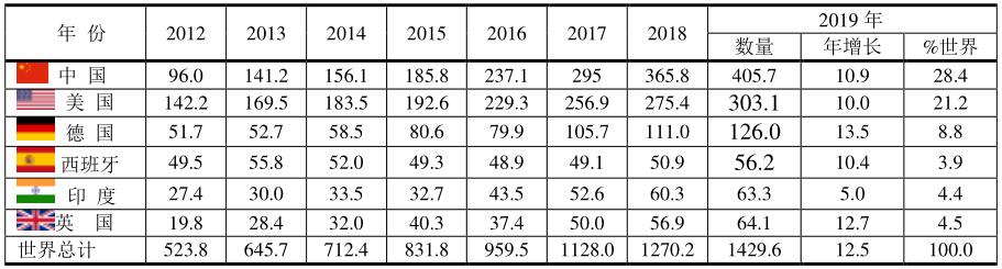 根據BP 2020年的報告,2019年全球風電場年增長12.5%,發(fā)電量為1429.6TWh,其中發(fā)電量最多的國家是中國,中國于2016年超過美國,2019年增長10.9%,發(fā)電量為405.7 TWh,占全球風電場發(fā)電總量的405.7/1429.6=28.4%。