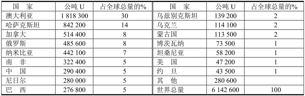各國的鈾儲(chǔ)量