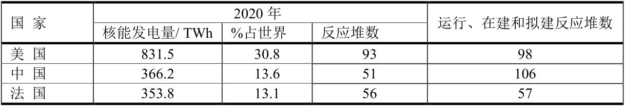 2020年核能發(fā)電量前三位國家