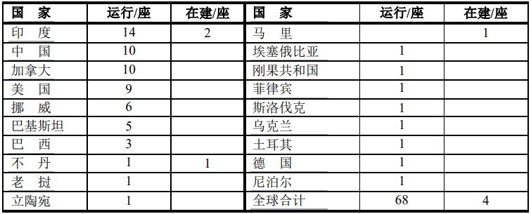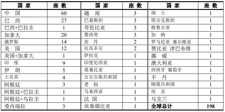 ▲ 世界上水電站裝機(jī)容量在1000MW以上的有198座,其中中國(guó)占據(jù)了60座,居世界總數(shù)的60/198=30%。其次為巴西、加拿大、俄羅斯。