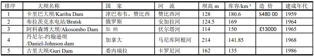▲ 世界上儲(chǔ)水量最多的大壩是津巴布韋和贊比西的贊比西河(Zambezi River)上的卡里巴大壩(Kariba Dam),1959年建成,儲(chǔ)水量為180.6km3,其次為俄羅斯安加拉河上的布拉茨克大壩(Bratsk Dam)和加納沃爾特湖阿科松博壩(Akosombo Dam),庫(kù)容169 km3。