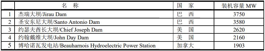 中國(guó)投產(chǎn)的裝機(jī)容量在1000MW以上的水力發(fā)電站