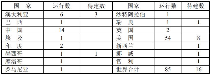 目前全球裝機容量大于250 MW的陸上風電場有85個風電場,待建的風電場有16個陸上風電場已經(jīng)立項。