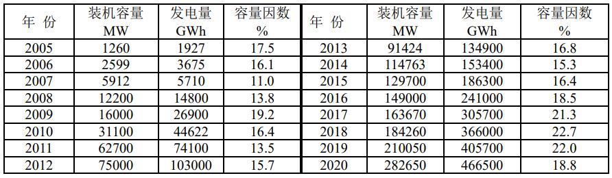 根據(jù)BP2021年的統(tǒng)計,中國裝機容量占全球總量的百分率如表。