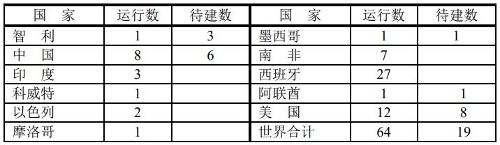 世界各國太陽能聚焦熱電站數(shù)量