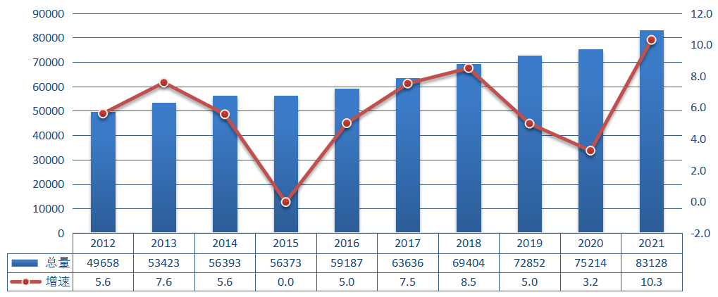 2021年是黨和國家歷史上具有里程碑意義的一年。面對百年變局和世紀(jì)疫情,我國經(jīng)濟(jì)發(fā)展和疫情防控保持全球領(lǐng)先,全面深化改革開放,構(gòu)建新發(fā)展格局邁出新步伐,高質(zhì)量發(fā)展取得新成效。2021年,我國國內(nèi)生產(chǎn)總值(GDP)比上年增長8.1%,兩年平均增長5.1%;經(jīng)濟(jì)規(guī)模突破110萬億元,穩(wěn)居全球第二大經(jīng)濟(jì)體,我國人均GDP達(dá)到80976元(按年平均匯率折算達(dá)12551美元),超過世界人均GDP水平。