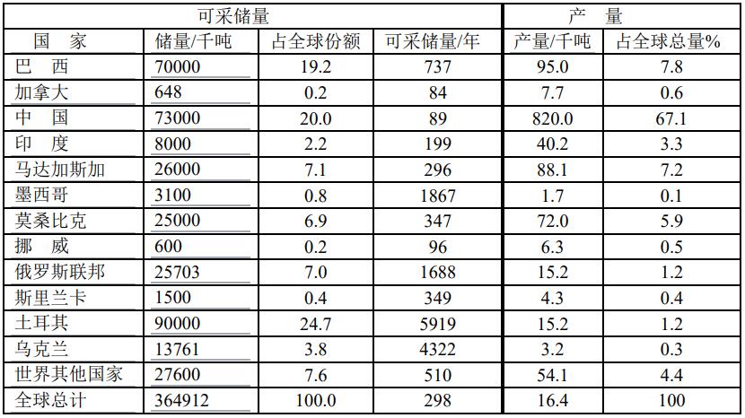 2021年底世界各國(guó)天然石墨的可采儲(chǔ)量和產(chǎn)量