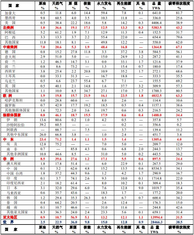 2021年世界各國(guó)電力結(jié)構(gòu)