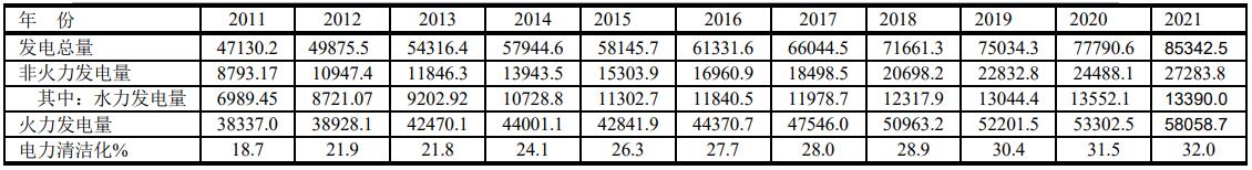 由于中國發(fā)電以化石燃料為主,特別是燃煤發(fā)電,電力清潔化程度進(jìn)展較慢。