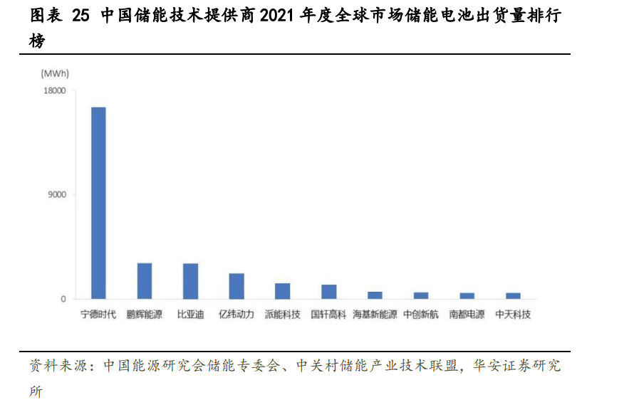 與動(dòng)力和大儲(chǔ)相比,戶用儲(chǔ)能對電芯技術(shù)的要求相對放寬。戶用場景對電池能量密 度等要求相對較低,影響用戶體驗(yàn)的主要是產(chǎn)品整體設(shè)計(jì),包括電池管理和全屋能源調(diào) 配等,對電芯性能的要求相對放寬,主要強(qiáng)調(diào)安全性和降本。 封裝路線尚無定型。戶用儲(chǔ)能系統(tǒng)規(guī)模在 10kWh 級(jí)別,大圓柱電池(單體容量 10Ah50Ah),方形(50Ah-300Ah),軟包(30Ah-80Ah)方案均有公司選用,目前戶儲(chǔ)采用的 電芯封裝路線并無定型。 小電芯或?qū)⒊蔀閼魞?chǔ)主流。當(dāng)前歐洲戶儲(chǔ)市場正經(jīng)歷低壓向高壓系統(tǒng)的產(chǎn)品迭代。 高電壓平臺(tái)可降低電流,從而控制系統(tǒng)發(fā)熱量,提高放電效率。儲(chǔ)能系統(tǒng)容量不變的情 況下,高壓系統(tǒng)對應(yīng)的電芯容量減小。例如,低壓平臺(tái)儲(chǔ)能電芯多為 100Ah,高壓平臺(tái)逐 漸向 50Ah 過渡。100Ah 以下小容量電池在戶用家儲(chǔ)領(lǐng)域仍有較長的應(yīng)用生命周期。 目前我國主要儲(chǔ)能電池提供商多為動(dòng)力電池制造商。根據(jù) GGII 統(tǒng)計(jì),2021 年國內(nèi) 儲(chǔ)能電池出貨量 48GWh,其中電力儲(chǔ)能電池出貨量 29GWh,同比增長 339%;而根據(jù)全球 研究機(jī)構(gòu) EVTank 與伊維經(jīng)濟(jì)研究院共 2021 年全球儲(chǔ)能電池出貨量 66.3GWh,同比增長 132.6%,電力系統(tǒng)儲(chǔ)能是主要增量貢獻(xiàn)。2021 年,全球市場中,儲(chǔ)能電池出貨量排名前 十位的中國儲(chǔ)能技術(shù)提供商,依次為:寧德時(shí)代、鵬輝能源、比亞迪、億緯動(dòng)力、派能 科技、國軒高科、?;履茉础⒅袆?chuàng)新航、南都電源和中天科技。