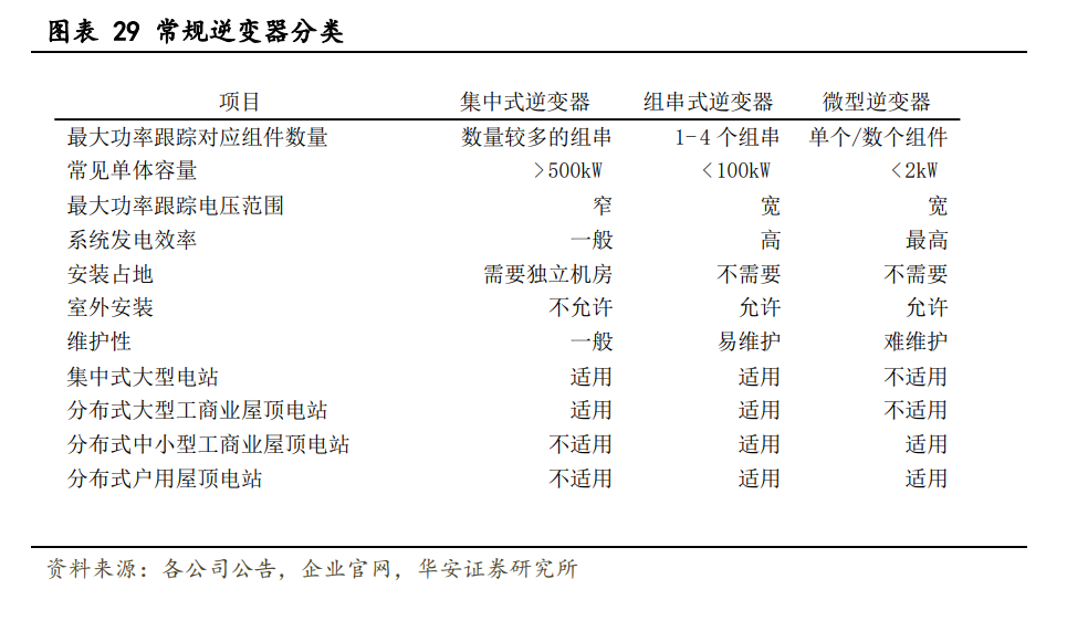 組串 PCS 彌補集中式不足,開啟規(guī)模化應(yīng)用。業(yè)內(nèi)目前電池儲能系統(tǒng)主要采取集中 式 PCS,多組電池并聯(lián)將引起電池簇之間的不均衡,久之并聯(lián)電池簇中會出現(xiàn)一部分電 池實際出力不足,而另一部分超出倍率使用的現(xiàn)象,造成“木桶”效應(yīng);而組串式 PCS 可 以實現(xiàn)簇級管理,提升系統(tǒng)壽命,提高全壽命周期放電容量,規(guī)模化應(yīng)用趨勢已見雛形。 當(dāng)前市場以組串式逆變器為主,微型逆變器尚處于發(fā)展階段。綜合考慮逆變器的不同技 術(shù)并結(jié)合其市場策略做出選擇的背景下,當(dāng)前組串式逆變器仍是市場較為主流選擇。目 前,華為、陽光電源、固德威、錦浪科技等光伏逆變器的核心供應(yīng)商均在組串式逆變器 有布局。而微型逆變器作為一種新的技術(shù)路線尚處于發(fā)展期,技術(shù)門檻較高,供應(yīng)商較 少。國外的微型逆變器市場發(fā)展較早,但出貨仍集中于海外龍頭 Enphase。我國微型逆變 器供應(yīng)商較少,一方面是因為國內(nèi)相關(guān)技術(shù)研發(fā)較晚,另一方面是因為國內(nèi)市場對于微 型逆變器的需求處于導(dǎo)入階段,尚未進入放量階段。