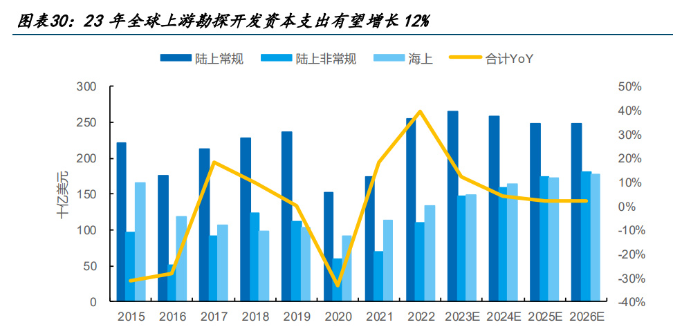3.2 23 年全球上游勘探開采資本開支有望增長(zhǎng),油服設(shè)備行業(yè)景氣度繼續(xù)提升