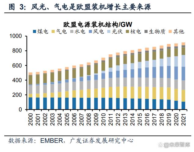 從裝機變化趨勢來看:歐盟煤電機組陸續(xù)關停,風光、氣電是裝機增長主要來源。