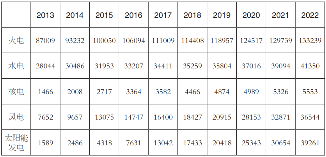 表4 2013-2022年全國電力裝機結構(單位:萬千瓦)