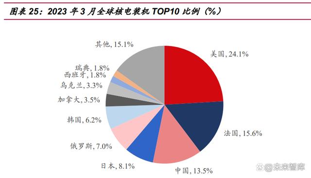 當(dāng)前全球都處在能源轉(zhuǎn)型的重要時期,核電作為清潔基荷能源的屬性得到重視。 美國、法國、日本、俄羅斯等曾經(jīng)在歷史上暫緩核電建設(shè)甚至退核的國家,均開始重 啟核電建設(shè),并制定實施一系列關(guān)于核能發(fā)展的戰(zhàn)略、措施和行動,紛紛提出更加積 極的發(fā)展目標(biāo)。 目前全球核電裝機 393GW,規(guī)模排名前五的國家分別為美國(95GW)、法國 (61GW)、中國(57GW)、日本(32GW)、俄羅斯(28GW),德國(4GW)作為 曾經(jīng)的核電大國目前正處于全面退核狀態(tài),印度(7GW)隨著國際貿(mào)易環(huán)境改善占比 有望逐漸提高。