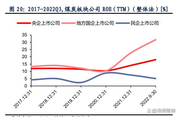 ROE 數(shù)據(jù)方面,煤炭地方國(guó)企上市公司表現(xiàn)優(yōu)于央企上市公司。受益于煤炭?jī)r(jià)格的提升, 資產(chǎn)收益率在 2020 年后迎來(lái)了大幅度增長(zhǎng)。民企上市公司整體表現(xiàn)弱勢(shì),ROE 呈下降趨 勢(shì),遠(yuǎn)低于國(guó)企央企表現(xiàn)。PB 估值方面,2020 年后隨著企業(yè)經(jīng)營(yíng)效益改善和煤炭板塊整體 股價(jià)的提升,國(guó)企央企上市公司的該項(xiàng)指標(biāo)也有一定程度的增長(zhǎng),走勢(shì)與 ROE 接近。但考 慮到 ROE 的增長(zhǎng)幅度更為明顯,我們認(rèn)為 PB 的增長(zhǎng)仍不足以完全反應(yīng)企業(yè)效益增長(zhǎng)的速 度。而煤炭行業(yè)在能源政策導(dǎo)向調(diào)整與電力市場(chǎng)化加速推進(jìn)背景下,疊加新一輪煤礦產(chǎn)能周 期,供需或?qū)㈤L(zhǎng)期趨緊,煤炭公司的高收益有望維持,內(nèi)在價(jià)值有望逐漸被市場(chǎng)認(rèn)可,估值 有望迎來(lái)進(jìn)一步修復(fù)。