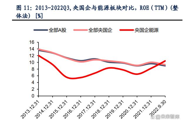 我們認(rèn)為,能源類央國(guó)企在全部國(guó)央企中是不可或缺的一部分。第一,從經(jīng)濟(jì)發(fā)展角度,國(guó) 內(nèi)經(jīng)過(guò)疫情三年,經(jīng)濟(jì)形勢(shì)下行,亟待復(fù)蘇,能源行業(yè)是重要支撐和基礎(chǔ)性產(chǎn)業(yè),在保障重 點(diǎn)領(lǐng)域供應(yīng)方面有不可忽視的作用。另一方面,行業(yè)經(jīng)濟(jì)貢獻(xiàn)大(2022 年前三季度營(yíng)業(yè)收 入占比 21%,凈利潤(rùn)占比 16%)且下游產(chǎn)業(yè)較多,在推動(dòng)復(fù)蘇方面也是較為重要的助力。 第二,從體量上看,能源板塊也是央國(guó)企上市公司改革的重要部分,上市公司的個(gè)股數(shù)量 (9%),市值占比(13%)均占全部國(guó)央企上市公司的較大比重。 第三,從政策角度上講,如上文提到的 2023 年的央企“一利五率”考核指標(biāo)保持了“利潤(rùn) 總額增長(zhǎng)率”、“全員勞動(dòng)強(qiáng)度”的考核,體現(xiàn)了國(guó)家對(duì)于央企拉動(dòng) GDP 貢獻(xiàn)的重視,能 源類央國(guó)企在營(yíng)業(yè)收入和凈利潤(rùn)兩項(xiàng)數(shù)據(jù)表現(xiàn)上較為出色,正符合了國(guó)家政策導(dǎo)向。
