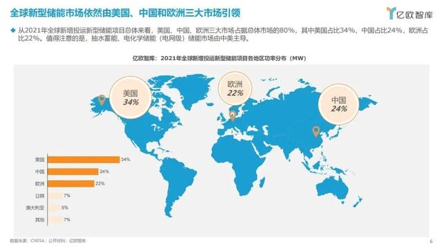 電能儲能包含機械、化學及電磁等眾多技術(shù)路線,抽水蓄能仍是主要儲能方式,美國、中國和歐洲依然引領(lǐng)全球新型儲能市場。