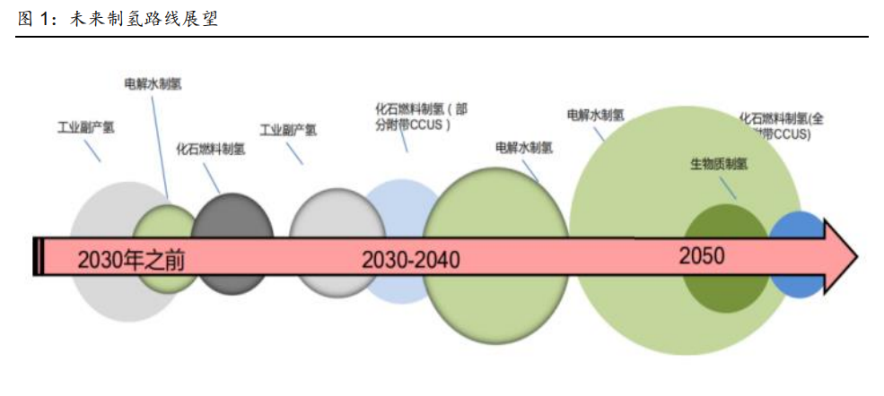 發(fā)展氫能是達(dá)到全球“雙碳”目標(biāo)的重要途徑。氫能是一種來源豐富、綠色低碳、應(yīng)用廣 泛的二次能源,能幫助可再生能源大規(guī)模消納,實(shí)現(xiàn)電網(wǎng)大規(guī)模調(diào)峰和跨季節(jié)、跨地域儲(chǔ) 能,加快推進(jìn)工業(yè)、建筑、交通等領(lǐng)域的低碳化。目前全球氫能發(fā)展如火如荼,中國國家 發(fā)改委、國家能源局聯(lián)合印發(fā)了《氫能產(chǎn)業(yè)發(fā)展中長期規(guī)劃(2021-2035 年)》確定了氫 能是未來國家能源體系的重要組成部分,海外對綠氫的重視程度也越來越高,2020 年歐 盟發(fā)布了《歐盟氫能戰(zhàn)略》,旨在推動(dòng)氫能在工業(yè)、交通、發(fā)電等全領(lǐng)域應(yīng)用;同年美國發(fā) 布《氫能計(jì)劃發(fā)展規(guī)劃》,指定多項(xiàng)關(guān)鍵技術(shù)經(jīng)濟(jì)指標(biāo),期望成為氫能產(chǎn)業(yè)鏈中的市場領(lǐng)導(dǎo) 者。我們認(rèn)為氫能的開發(fā)和利用有望引發(fā)深刻的能源革命,必須重視氫能行業(yè)的發(fā)展和投 資機(jī)會(huì)。