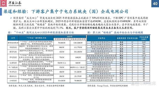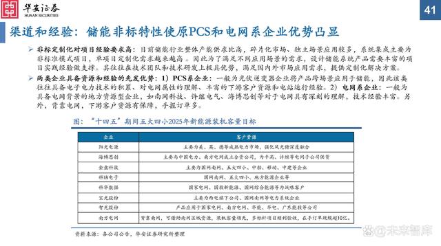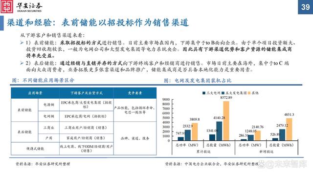 渠道和經(jīng)驗(yàn):表前儲(chǔ)能以招投標(biāo)作為銷售渠道。從下游客戶和銷售渠道來看: 1)表前儲(chǔ)能:采取招投標(biāo)的方式進(jìn)行銷售。目前主要市場在國內(nèi),下游集中于to B面向企業(yè)。由于單個(gè)項(xiàng)目投資額大、投資回收期較長,一般為電網(wǎng)公司和大型發(fā)電集團(tuán)等電力系統(tǒng)央企。因此具有下游渠道優(yōu)勢和客戶資源的儲(chǔ)能集成商將率先受益。 2)表后儲(chǔ)能:通過經(jīng)銷與直銷并存的方式向下游終端客戶和經(jīng)銷商進(jìn)行銷售。市場目前主要在海外,集中于toC端面向大眾消費(fèi)者,業(yè)務(wù)拓展更多依靠渠道和品牌推廣,儲(chǔ)能集成商是否具備本地化能力是重要因素。
