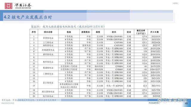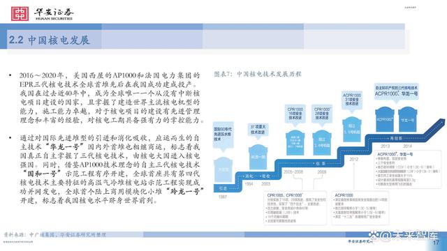 2016~2020年,美國西屋的AP1000和法國電力集團(tuán)的 EPR三代核電技術(shù)全球首堆先后在我國成功建成投產(chǎn)。 我國在過去近40年中,成為全球唯一一個(gè)從沒有中斷核 電項(xiàng)目建設(shè)的國家,且掌握了建造世界主流核電機(jī)型的 能力,施工能力卓越,對于核電項(xiàng)目的建設(shè)有先進(jìn)管理 理念和豐富的經(jīng)驗(yàn),對核電工期具備強(qiáng)有力的掌控能力。