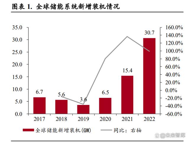 全球儲能裝機快速增長,以鋰離子電池為代表的新型儲能貢獻(xiàn)主要增速