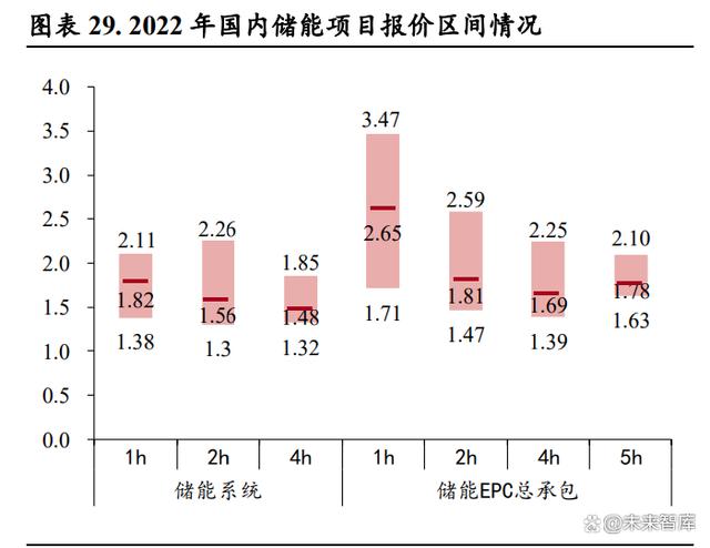 儲能系統(tǒng)投標(biāo)價格持續(xù)下行,刺激需求釋放。根據(jù)儲能與電力市場公眾號的統(tǒng)計,2022 年招標(biāo)的近 150個儲能項目中,2h 的儲能系統(tǒng)占比達(dá) 63%,平均報價 1.56 元/Wh;儲能 EPC 總承包招標(biāo)的近 120 個項目中,2h 的 EPC 項目占比達(dá) 77%,平均報價 1.81 元/Wh。從時間維度上來看,2022 年儲能系 統(tǒng)報價呈現(xiàn)出了“兩頭高中間低”的特點,并且從 5 月起持續(xù)穩(wěn)定在 1.5-1.6 元/kWh 的范圍之內(nèi), 而進入 2023 年之后,隨著電芯主要原材料碳酸鋰價格的進入下行通道,儲能系統(tǒng)報價屢創(chuàng)新低,2023 年 7 月份 2 小時儲能系統(tǒng)的平均報價為 1.12 元/Wh,同比下降 28.24%,環(huán)比下降 0.88%,最低報價 低至 1.00 元/Wh,而 4 小時儲能系統(tǒng)最低報價低至 0.87 元/Wh。儲能系統(tǒng)價格的快速下降,將有力 提升大儲項目業(yè)主方的投資積極性,推動項目的建設(shè)進程。