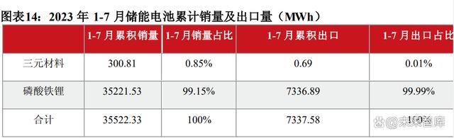 1、鋰離子電池綜合性能優(yōu)越,也是電化學(xué)儲(chǔ)能主流路線。鋰離子電池具有能量密度高、充放電效率高、響應(yīng)速度快等優(yōu)點(diǎn),是目前發(fā)展最快的新型儲(chǔ)能技術(shù)。鋰離子儲(chǔ)能電池正極材料以磷酸鐵鋰為主,在2023年1-7月儲(chǔ)能電池累計(jì)銷量及出口量中均占比超99%,國(guó)內(nèi)龍頭受益于磷酸鐵鋰路線認(rèn)可度提升優(yōu)勢(shì)凸顯,關(guān)注磷酸鐵鋰儲(chǔ)能電池產(chǎn)業(yè)鏈相關(guān)龍頭企業(yè)。