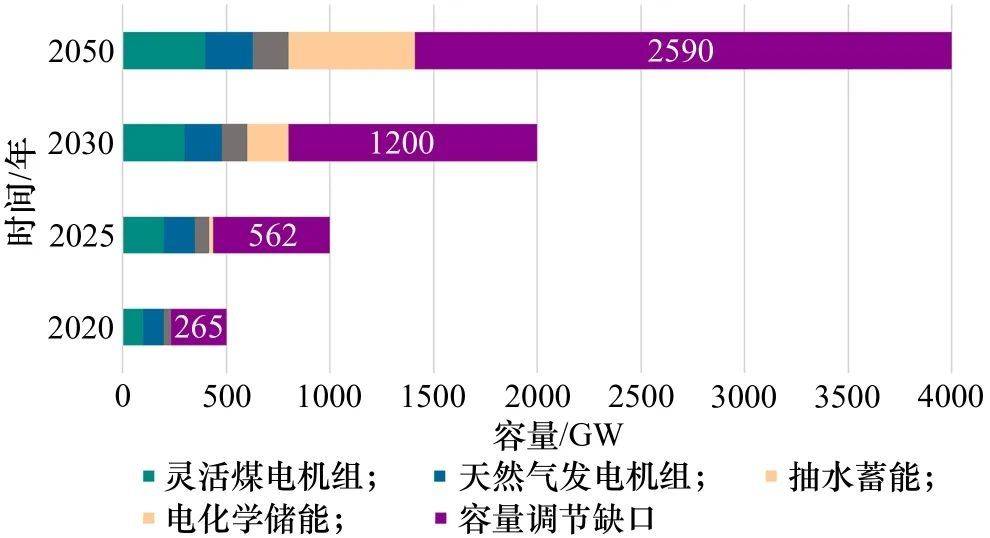 圖4 我國2020—2050年調(diào)峰容量缺口