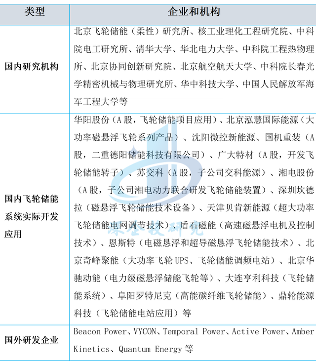 表3 飛輪儲(chǔ)能系統(tǒng)和裝置開(kāi)發(fā)應(yīng)用重點(diǎn)機(jī)構(gòu)