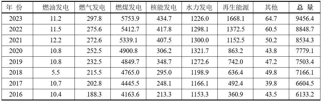 燃氣發(fā)電、核能發(fā)電和再生能源發(fā)電都是逐年增長。但是中國水力發(fā)電量的年度波動較大,因為受到多種因素的影響,包括氣候條件、水資源管理以及電力需求等。因此,水力發(fā)電量的年度數(shù)據(jù)波動相對較大,但是總體仍然在進展。