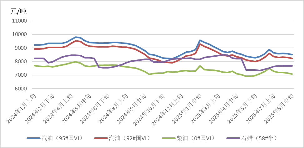 8月中旬,IEA上調(diào)全球石油供應(yīng)過剩預(yù)期,美國能源信息署(EIA)預(yù)測(cè)2025年美國原油日產(chǎn)量將創(chuàng)1341萬桶紀(jì)錄,夏季駕駛旺季臨近尾聲原油需求下降預(yù)期增強(qiáng),中美關(guān)稅暫停措施再延長(zhǎng)90天等因素推動(dòng)國際油價(jià)延續(xù)下跌態(tài)勢(shì)。然而,市場(chǎng)對(duì)美聯(lián)儲(chǔ)9月降息的預(yù)期增強(qiáng),阿拉斯加美俄峰會(huì)并未取得實(shí)質(zhì)性進(jìn)展,俄烏局勢(shì)不確定性推升地緣風(fēng)險(xiǎn)溢價(jià),受上述因素影響,國際油價(jià)跌幅有所收窄。