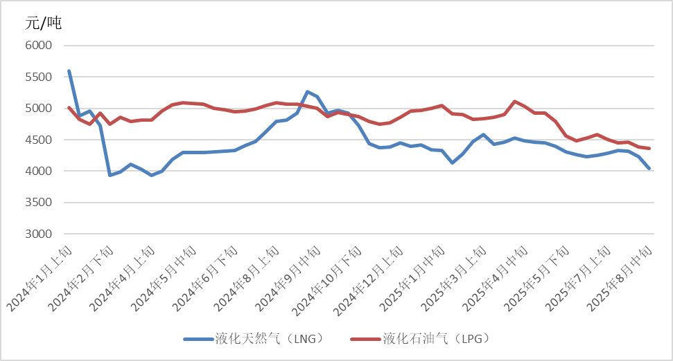 截至8月25日,普氏日韓LNG(JKM)期貨價(jià)格收于11.55美元/百萬英熱單位,月環(huán)比下降2.74%,相較2024年同期的13.82美元/百萬英熱單位,下降16.43%。