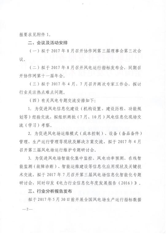 關(guān)于印發(fā)2017年全國風(fēng)力發(fā)電技術(shù)協(xié)作網(wǎng)工作安排的通知